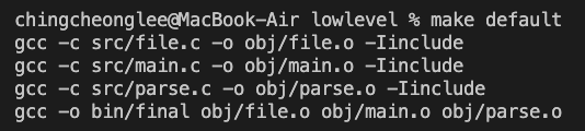 We compile intermediate object file one by one by:
