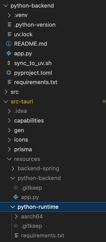 requirements.txtfrompython-backend/intosrc-tauri/resources/python-runtime. We will be downloading both python runtime and required packages into thispython-runtime/directory.This