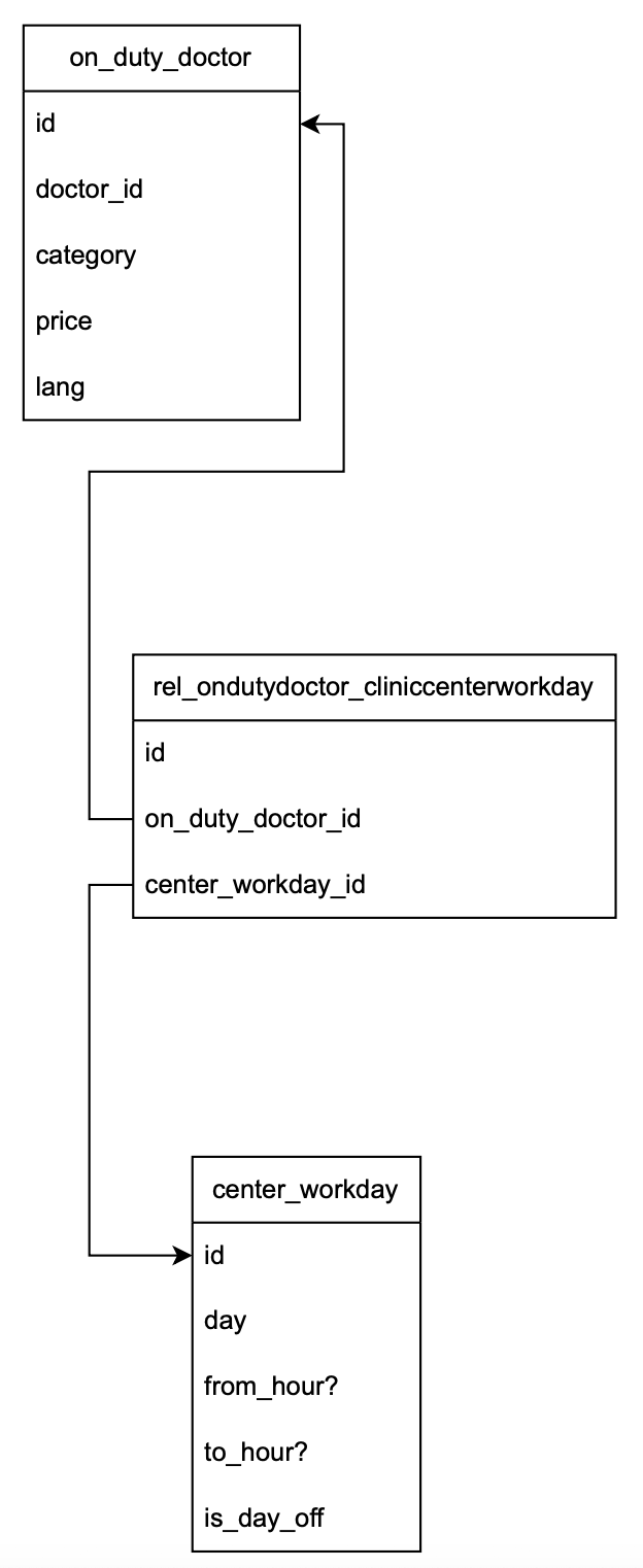 class, which in turns associate toOnDutyDoctor