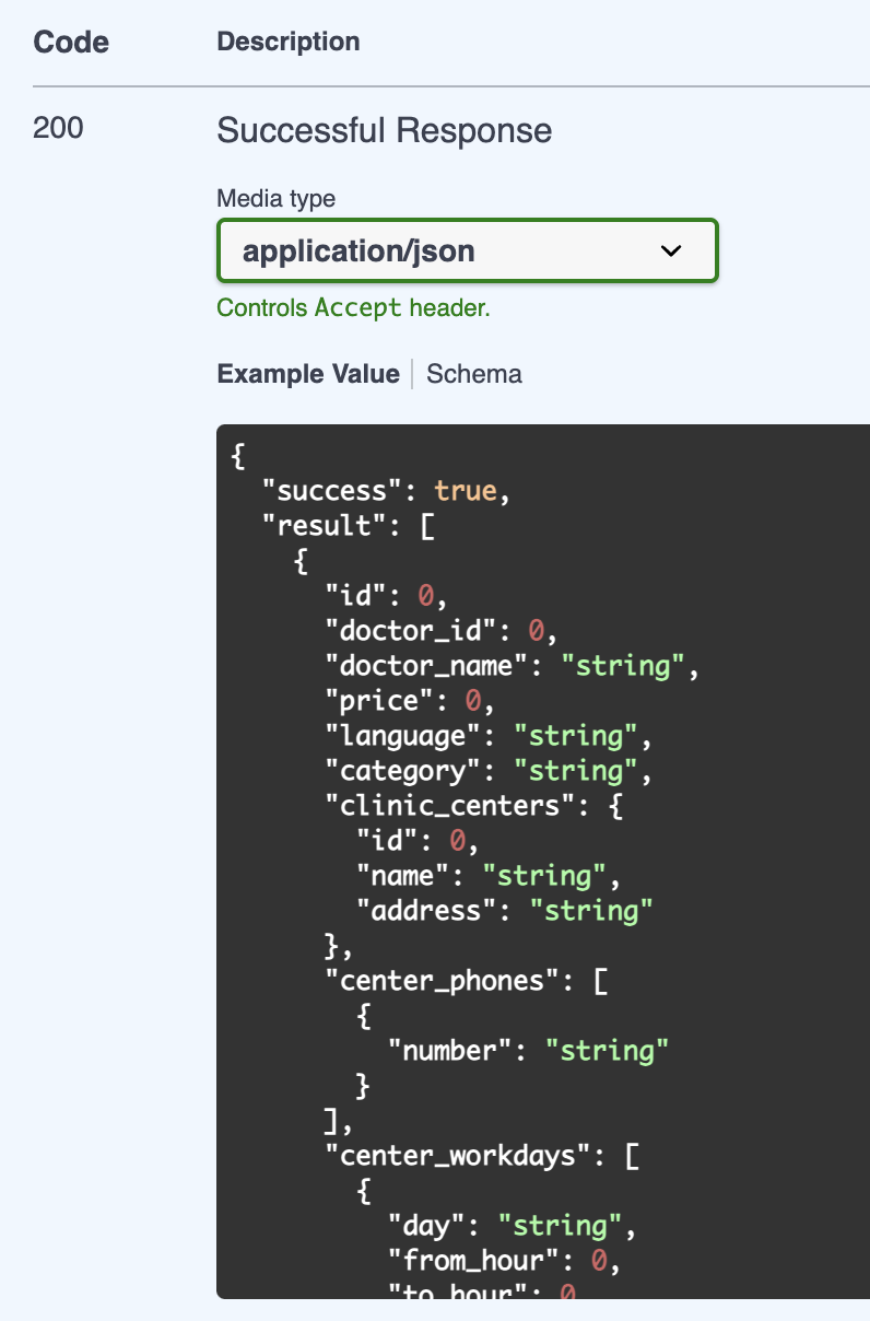 , then we obtain a schema from the swagger document:By returning this