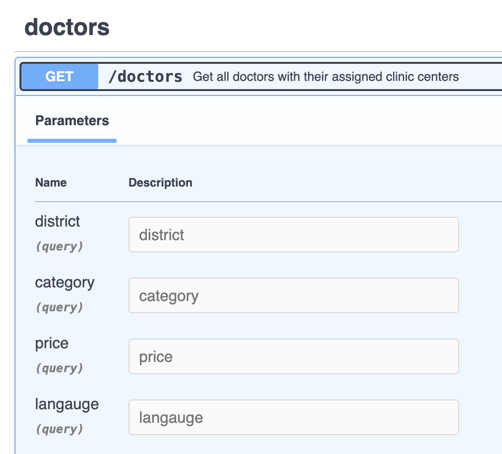 @router.get( "", response_model=ResponseDTO[List[OnDutyDoctorResponse]], summary="Get all doctors with their assigned clinic centers", ) async def get_doctors( district: Optional[str] = None, category: Optional[str] = None, price: Optional[int] = None, langauge: Optional[str] = None, db: Session = Depends(get_db), doctor_application_service: DoctorApplicationService = Depends(DoctorApplicationService) ): doctor_responses = doctor_application_service.get_doctors(db, district=district, category=category, price=price, langauge=langauge) return ResponseDTO( success=True, result=doctor_responses )