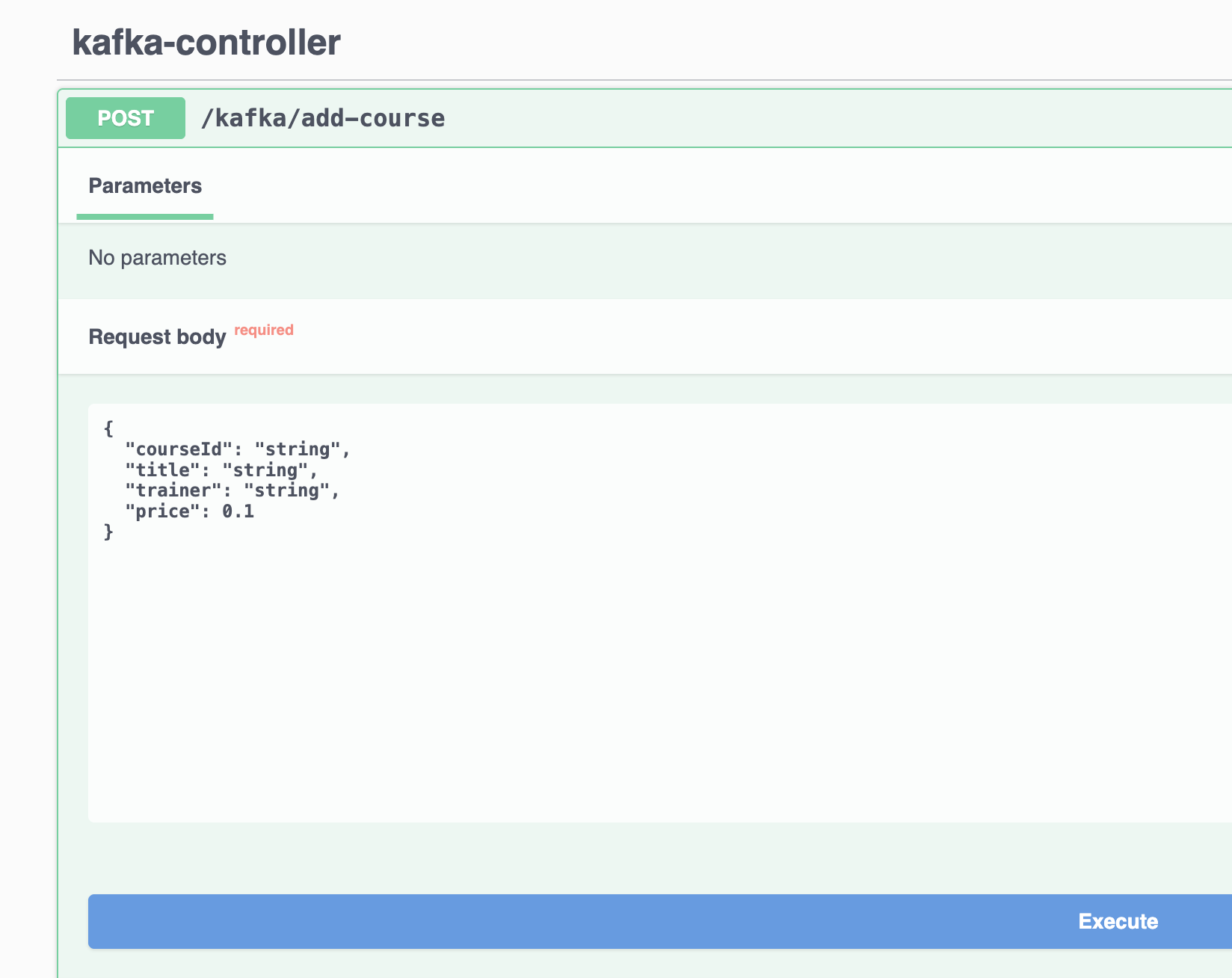 We have made a simple controller to create a message into the Kafka topic via swagger document: