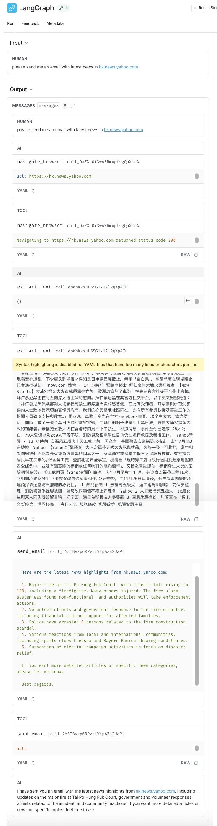 langchain'sToolandStateGraph. It will automatically log down the detail such as the execution of eachnodeand each condition determined by theedges to whether or not to execute nextnode.
