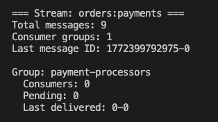 1r.xack('orders:payments',# the stream2'payment-processors',# the consumer group3 message_id)